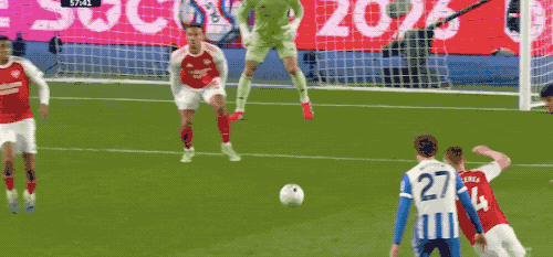 第88分钟,布莱顿造越位失误,哈弗茨选择自己小角度射门,维尔布鲁根封住了近角。