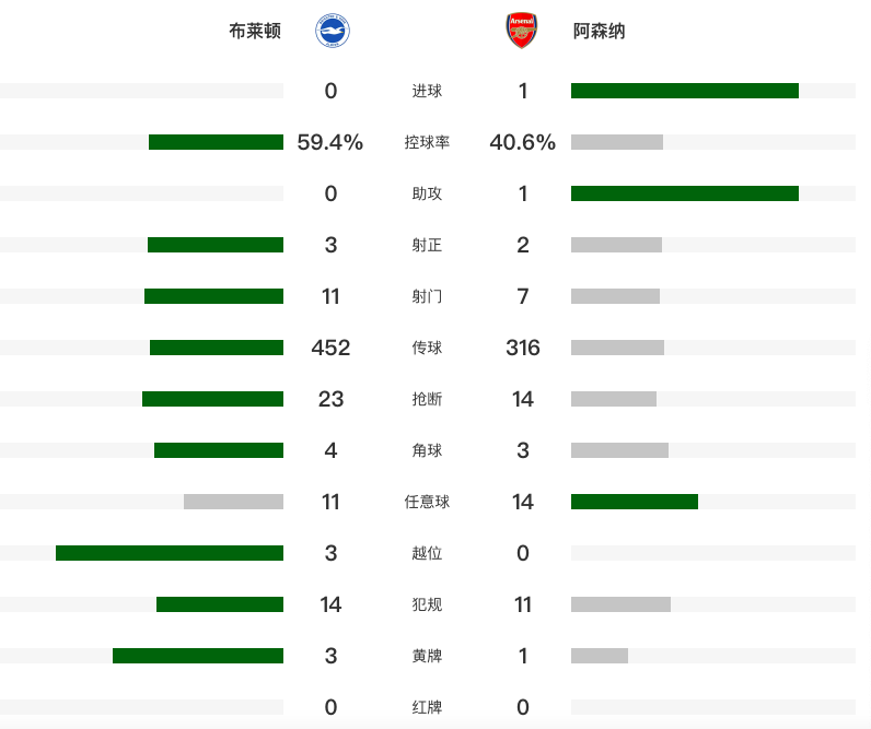 北京时间3月5日凌晨,英超第29轮继续进行,布莱顿坐镇主场迎战阿森纳。第9分钟,萨卡的射门打在巴莱巴身上变向,枪手早早取得领先,这也是全场比赛的唯一进球。最终,阿森纳客场1-0战胜布莱顿,赛季三杀对手。由于曼城本轮2-2战平诺丁汉森林,各项赛事10场不败的阿森纳多赛一场的情况下,领先曼城7分。